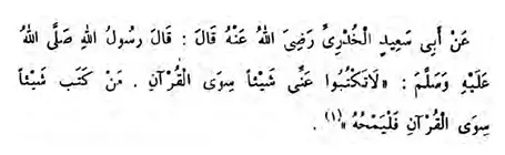 ![]() Peygamber dedi ki “Benden Kuran dışında hiçbir şeyi kâğıda dökmeyin.”[Ahmed, Vol. 1, Sayfa 171 ve Sahih-i Müslim] |