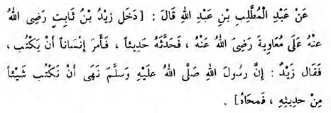 ![]() Bu Hadis, Peygamber’in Hadis karşıtı tavrını ölümüne kadar sürdürdüğünü belirtir.[Ahmed, Vol. 1, Sayfa 192] |